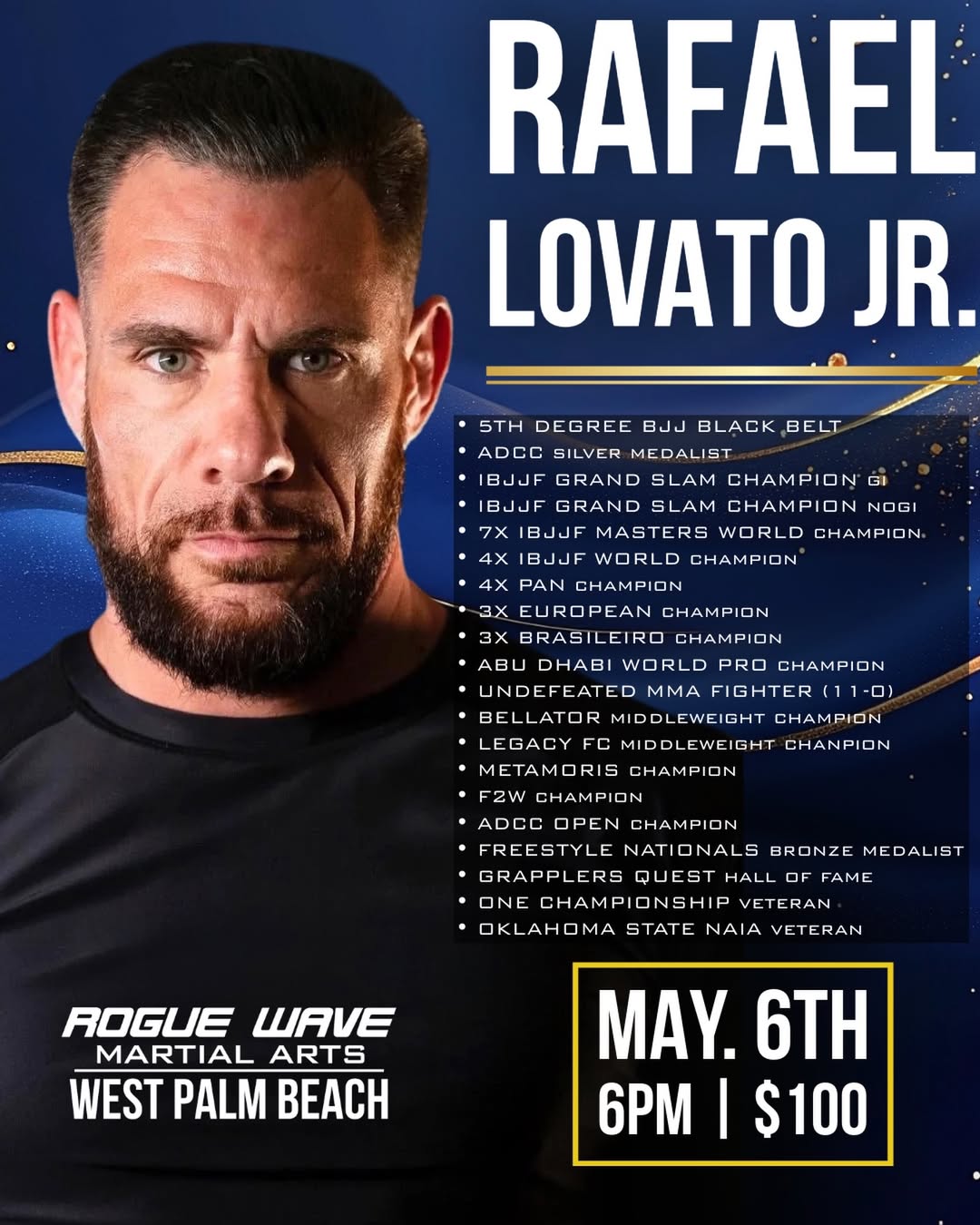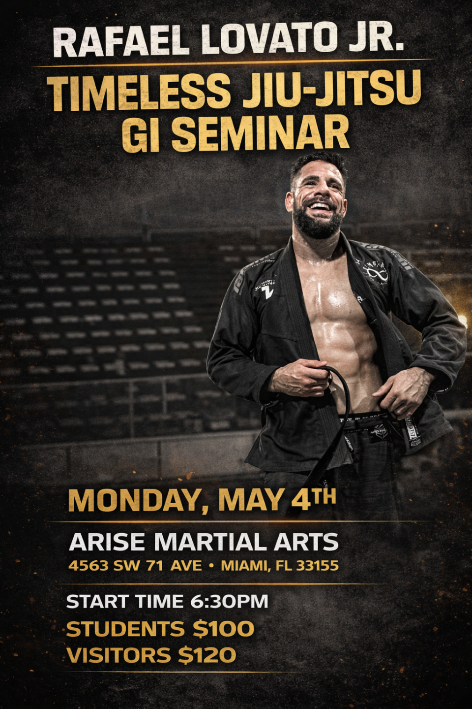 Mark your calendars for May 4th! We’ll be hosting a gi seminar with Rafael Lovato Jr. – a living legend, former Bellator Middle weight world champ, IBJJF GrandSlam holder, a pioneer in our field, claiming countless titles and accolades.